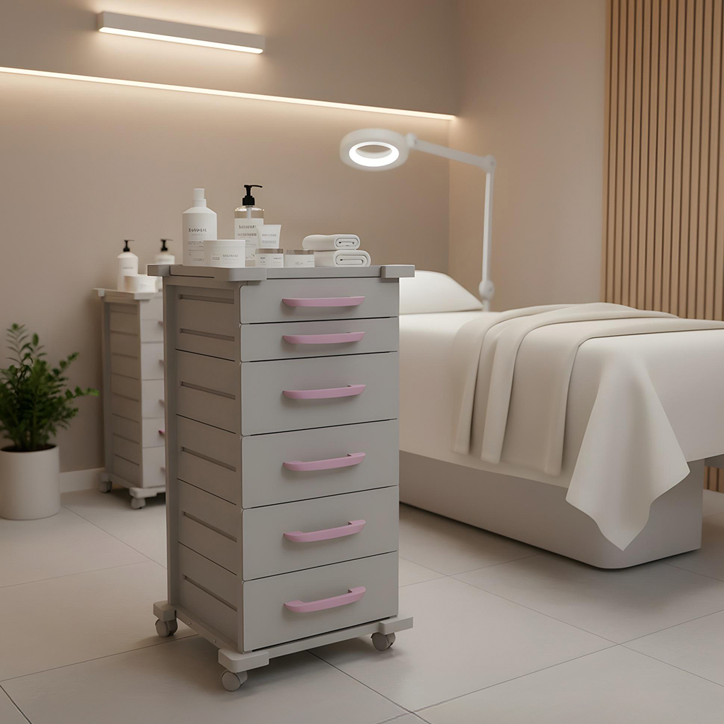 Nos setores de estética, como salões de beleza, estúdios de tatuagem e manicure, o carrinho auxiliar oferece praticidade para armazenar tinturas, esmaltes, escovas e outros produtos essenciais.