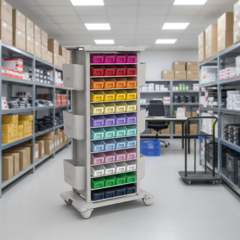 Introduzindo o Carrinho Organizador com 96 Gaveteiros Bins, 6 Caixas laterais e 12 Suportes MAD.U ONE 740: O aliado indispensável em diversos ambientes!
