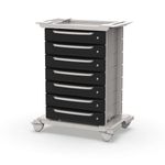 Equipado com gavetas, tampos e suportes estrategicamente posicionados, o carrinho multiuso oferece uma estocagem eficiente e um armazenamento seguro.