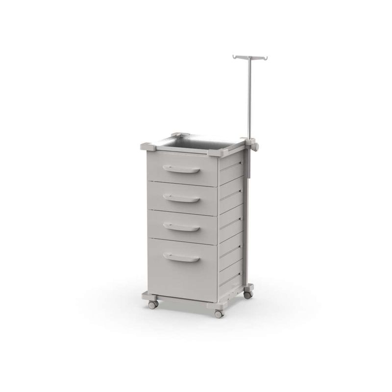 Carrinho Auxiliar com 4 Gavetas Cinza Claro, Haste Telescópica e Tampo Inox – MAD.U Extra 385 MADU000351.01.01.EST