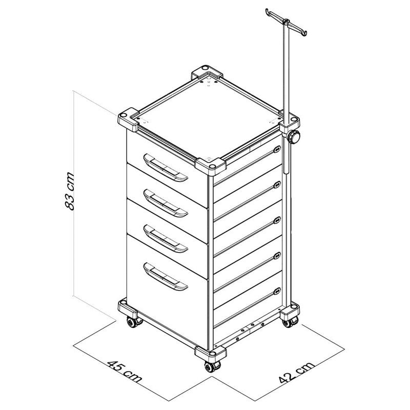 Carrinho Auxiliar com 3 Gavetas Médias e 1 Gaveta Alta da linha: MAD.U EXTRA 385