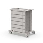 Equipado com prateleiras, tampos e suportes estrategicamente posicionados, o carrinho multiuso oferece uma estocagem eficiente e um armazenamento seguro.