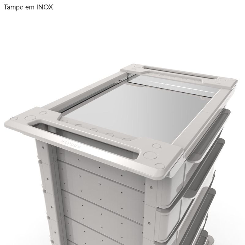 Com um tampo e gavetas de INOX, oferece uma superfície limpa e moderna que resiste ao tempo e ao uso contínuo.