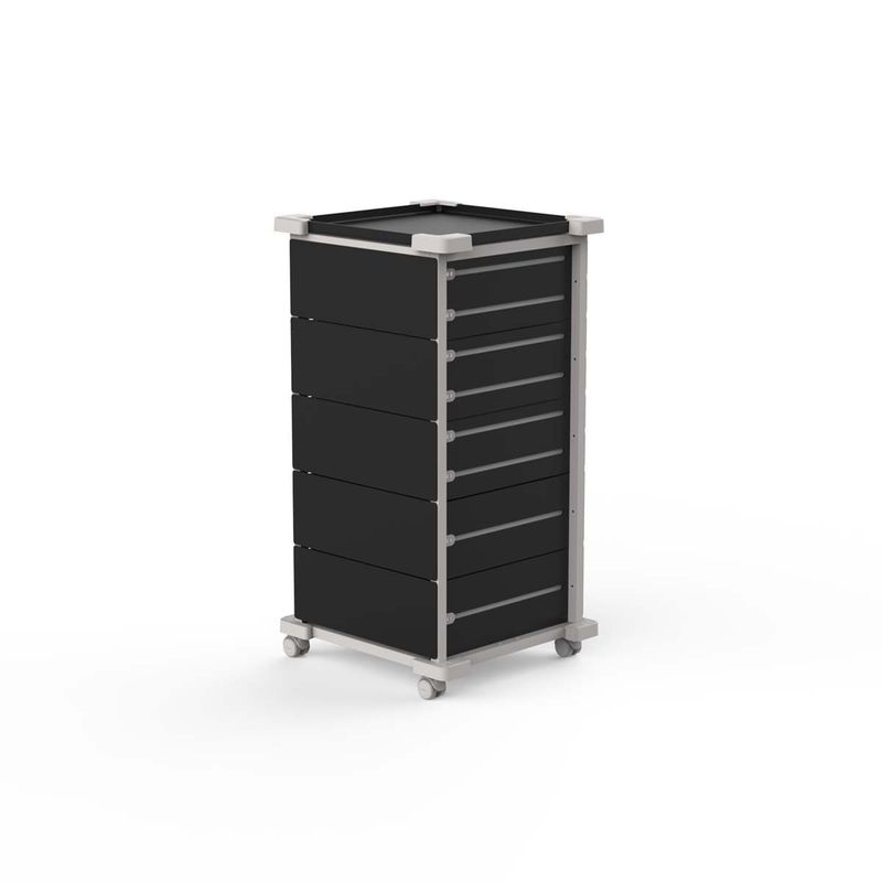 MóveisCarrinhosCarrinho AuxiliarCarrinho Auxiliar 8 Gavetas Pretas com Tampo PSAI – MAD.U Extra 385