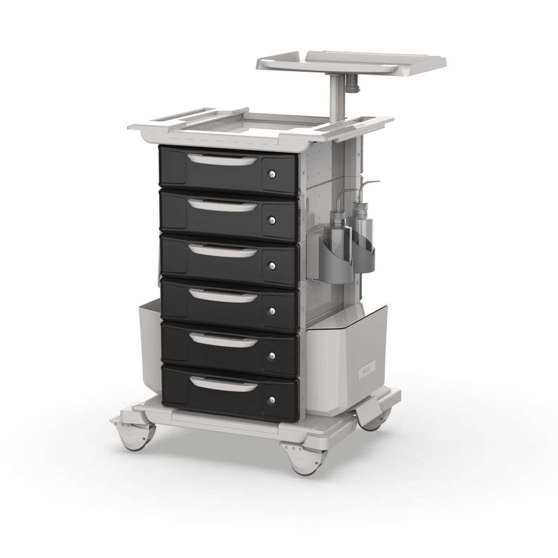 Carrinho Beira Leito Hospitalar 6 Gavetas Pretas com Acessórios da linha: MAD.U ONE 560