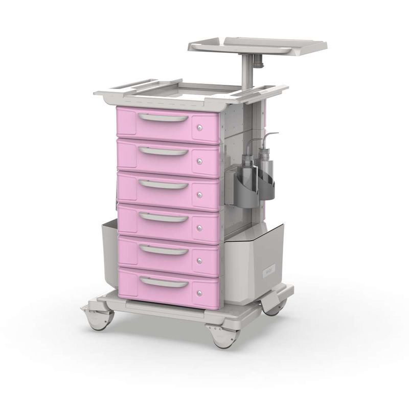 Carrinho Beira Leito Hospitalar 6 Gavetas Rosa com Acessórios da linha: MAD.U ONE 560