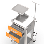Carrinho de Emergência 2 Gavetas Laranja e 1 Prateleira com Tampo Inox e Suporte para Equipamentos – MAD.U Extra 385 MADU000537.01.07.EST