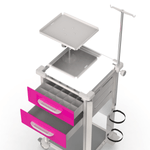 MóveisCarrinhosCarrinho com GavetasCarrinho de Emergência 2 Gavetas Pink e 1 Prateleira com Tampo Inox e Suporte para Equipamentos – MAD.U Extra 385