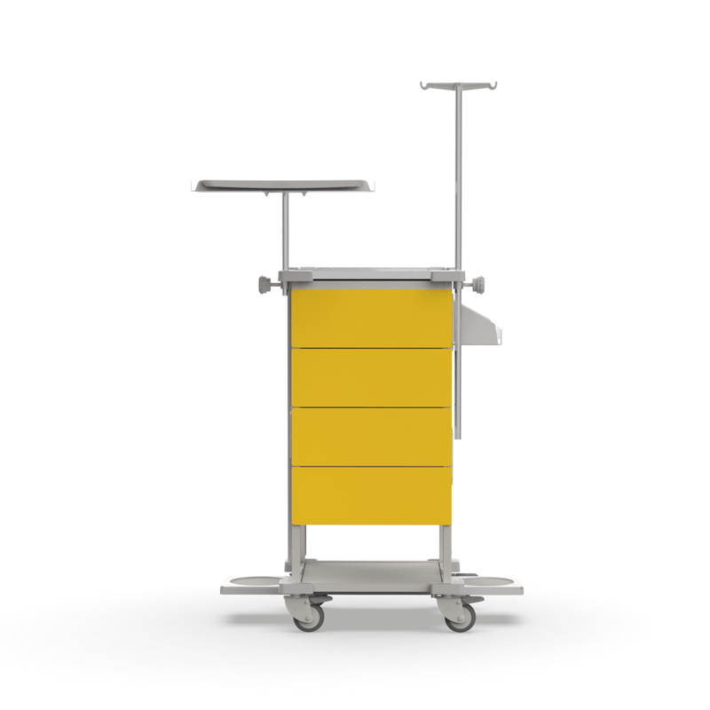Carrinho de Sedação 3 Gavetas Amarelo, Tampo Inox e Suportes – MAD.U Extra 385 MADU000538.01.13.EST