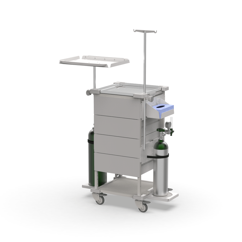 Perfeito para uso em consultórios odontológicos, clínicas de cirurgia ambulatorial, salas de sedação, anestesiologia e emergências hospitalares, o carrinho oferece suporte completo em procedimentos que exigem controle e monitoramento de pacientes.