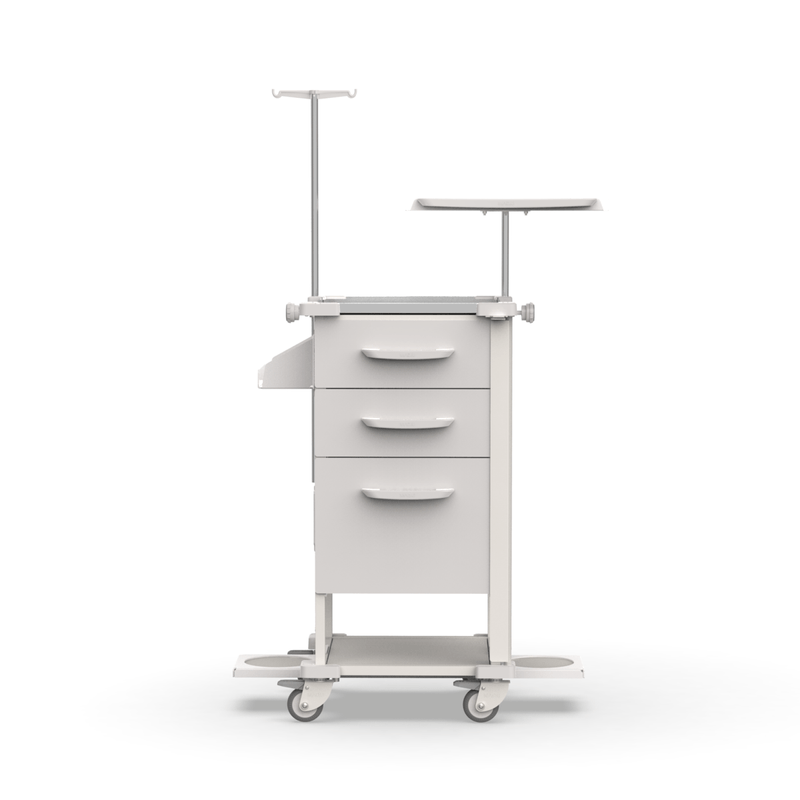 Carrinho de Sedação 3 Gavetas, Tampo Inox e Suportes – MAD.U Extra 385