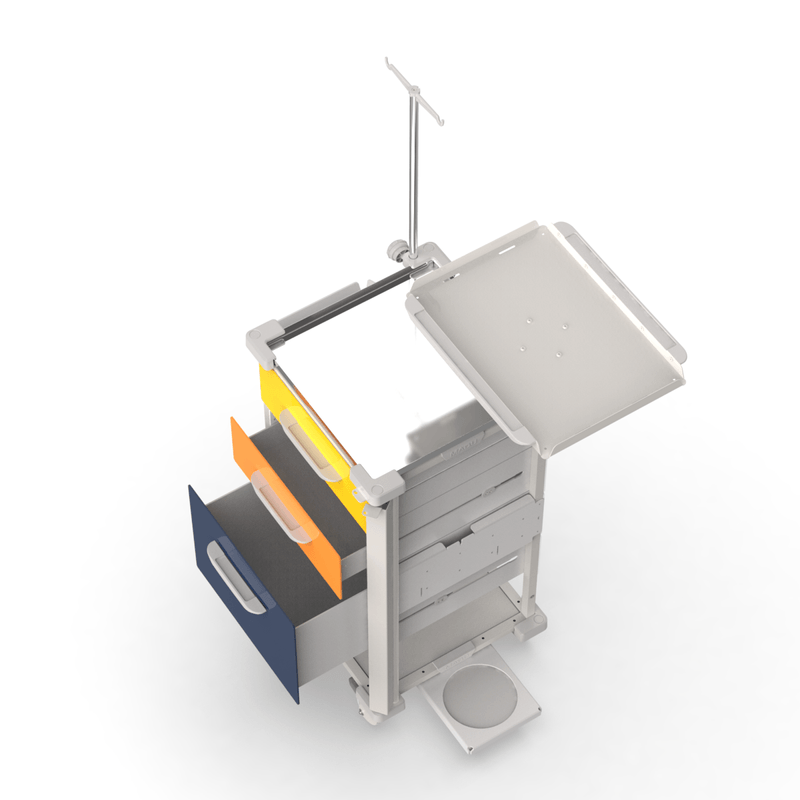 Carrinho de Sedação 3 Gavetas Coloridas, Tampo Inox e Suportes – MAD.U Extra 385 MADU000538.01.VR.01