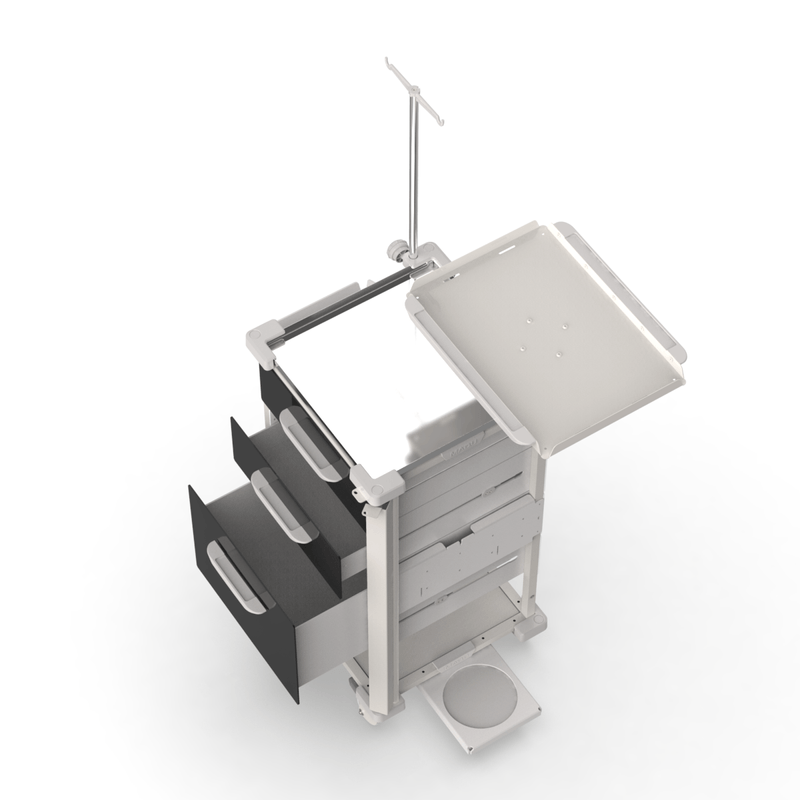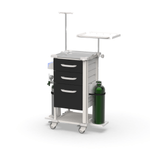 Carrinho de Sedação 3 Gavetas, Tampo Inox e Suportes – MAD.U Extra 385