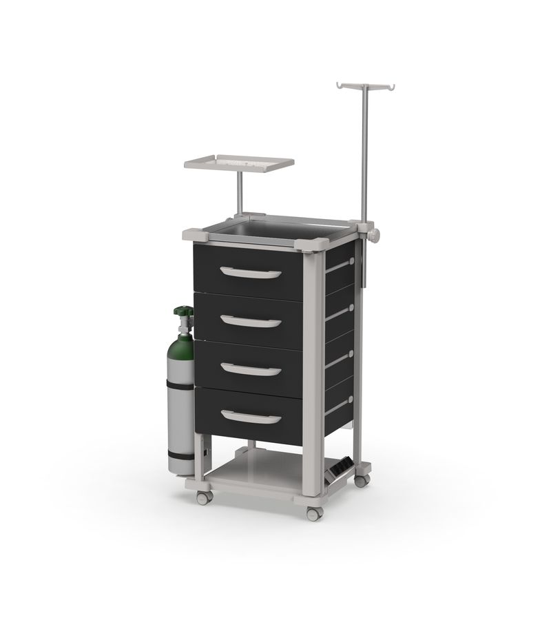 Carrinho de Emergência 4 Gavetas Pretas com Suportes e Prancha de Massagem – MAD.U Extra 385 MADU000335.01.16.EST