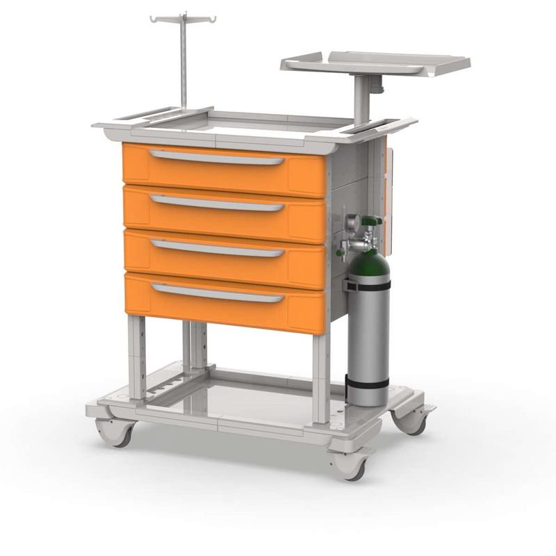 Carrinho de Emergência Hospitalar com 4 Gavetas Laranja e Acessórios – MAD.U One 740 MADU000038.01.07.EST