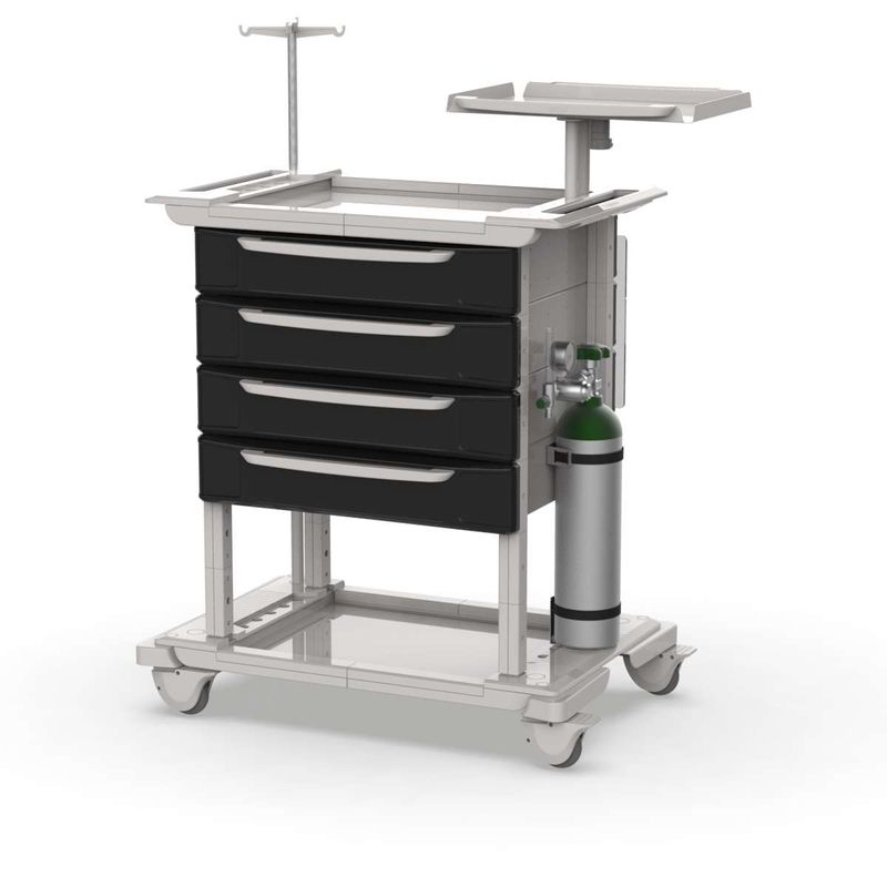MóveisCarrinhosCarrinho com GavetasCarrinho de Emergência Hospitalar com 4 Gavetas Preto e Acessórios – MAD.U One 740