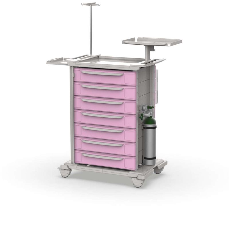 MóveisCarrinhosCarrinho com GavetasCarrinho de Emergência Hospitalar 7 Gavetas Rosa com Acessórios – MAD.U One 740