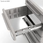 Equipado com gavetas, tampos e suportes estrategicamente posicionados, o carrinho multiuso oferece uma estocagem eficiente e um armazenamento seguro.
