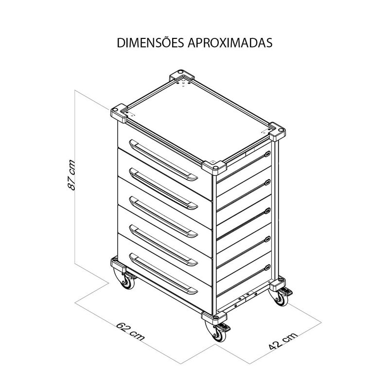Com isso, suas 5 gavetas estrategicamente posicionadas, o Carrinho Auxiliar MAD.U EXTRA 550 oferece uma organização impecável para uma ampla variedade de itens, desde utensílios e peças até materiais de escritório e acessórios diversos.