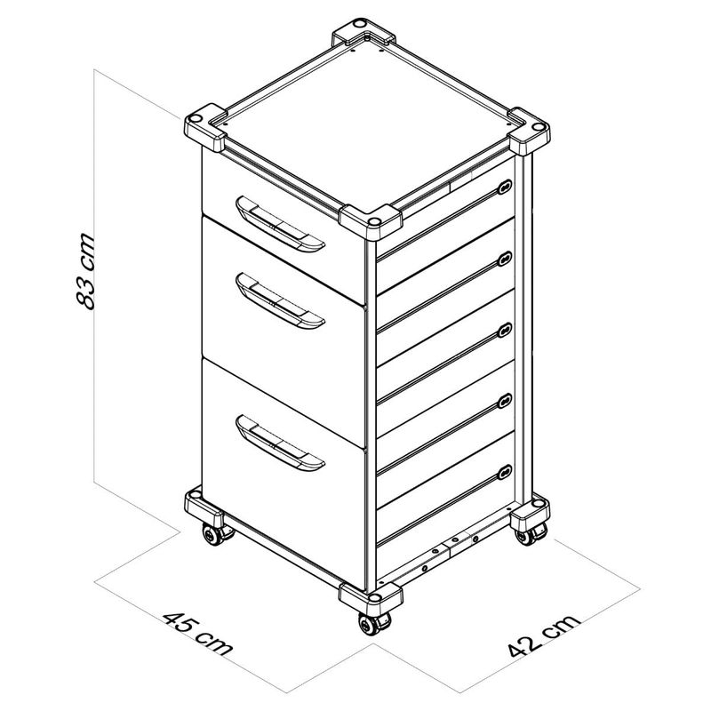 Armário Carrinho Organizador com 3 Gavetas e Tampo em Inox da linha: MAD.U EXTRA