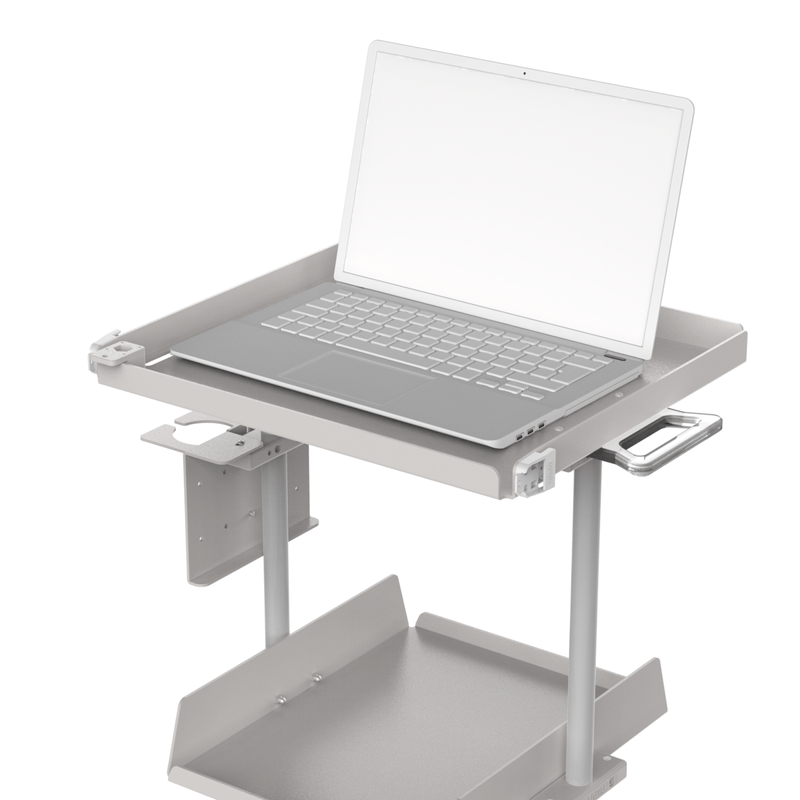 escritórios, clínicas, hospitais, áreas administrativas e ambientes corporativos, o carrinho se adapta a diferentes fluxos de trabalho. Seu design inteligente possibilita o uso do notebook de forma prática durante a operação e, ao mesmo tempo, garante proteção e segurança quando o equipamento não está em uso.
