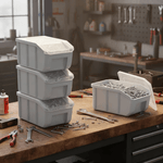 Com um design funcional, o gaveteiro pode ser empilhado tanto com quanto sem a tampa, proporcionando versatilidade e otimização eficiente de espaço.