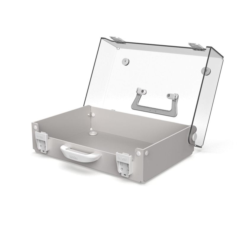 Tampa Transparente Permite visualizar facilmente os conteúdos internos sem a necessidade de abrir a maleta, agilizando processos e facilitando o controle de materiais.